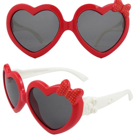 Yumuşak silikon esnek çocuk güneş gözlüğü-polarize UV400 kalp şekli ilmek yürüyor kız güneş gözlüğü ile karikatür hayvan dekor